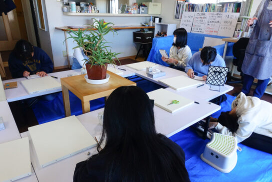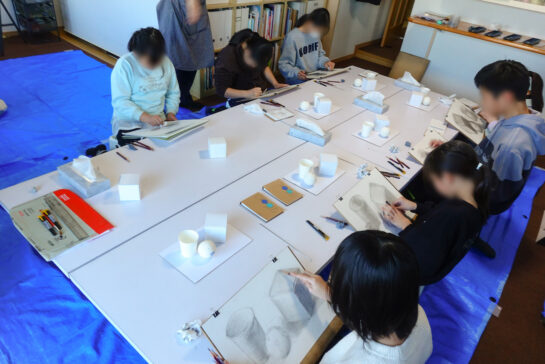 午後クラスは、来週完成ですので、今日はほぼ完成までどんどん描き込んでいきました。地面との接点や、物の位置、形を明確に、鉛筆を少しずつ立ててハッチングで描いていきます。