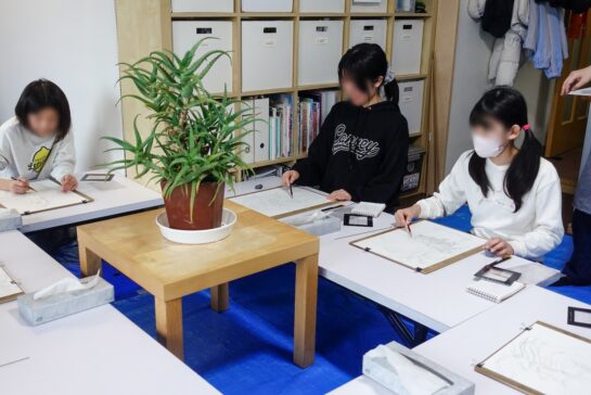 午後クラスも新しい課題に入りました。午前と同じアロエをモチーフに使いつつ、「着彩」を行います。着彩は水彩画ではありますが、旅のスケッチなどで行う淡彩や学校の水彩とは違い、精密にデッサンをしてから色をつけるので「色付きデッサン」とも言えます。日本画を学ぶ人が行う訓練です。なかなか手強いモチーフですが頑張りましょう〜!