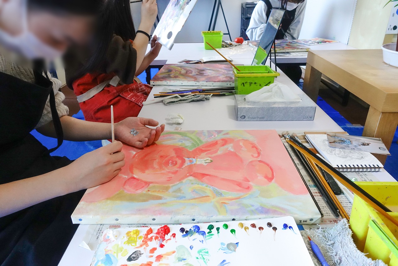 今週は少し寄りで制作風景を撮ってみました😊午前も午後も集中して描いていますね。