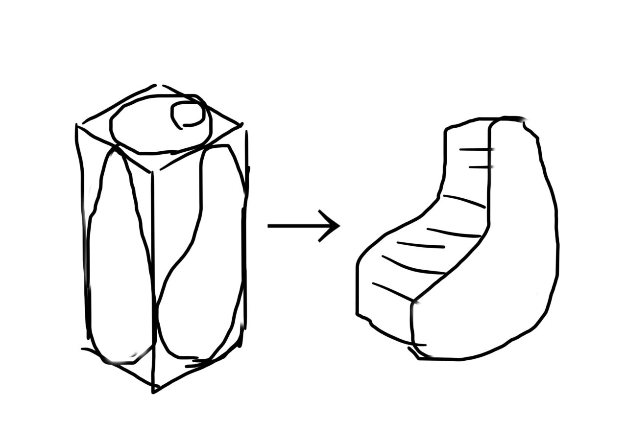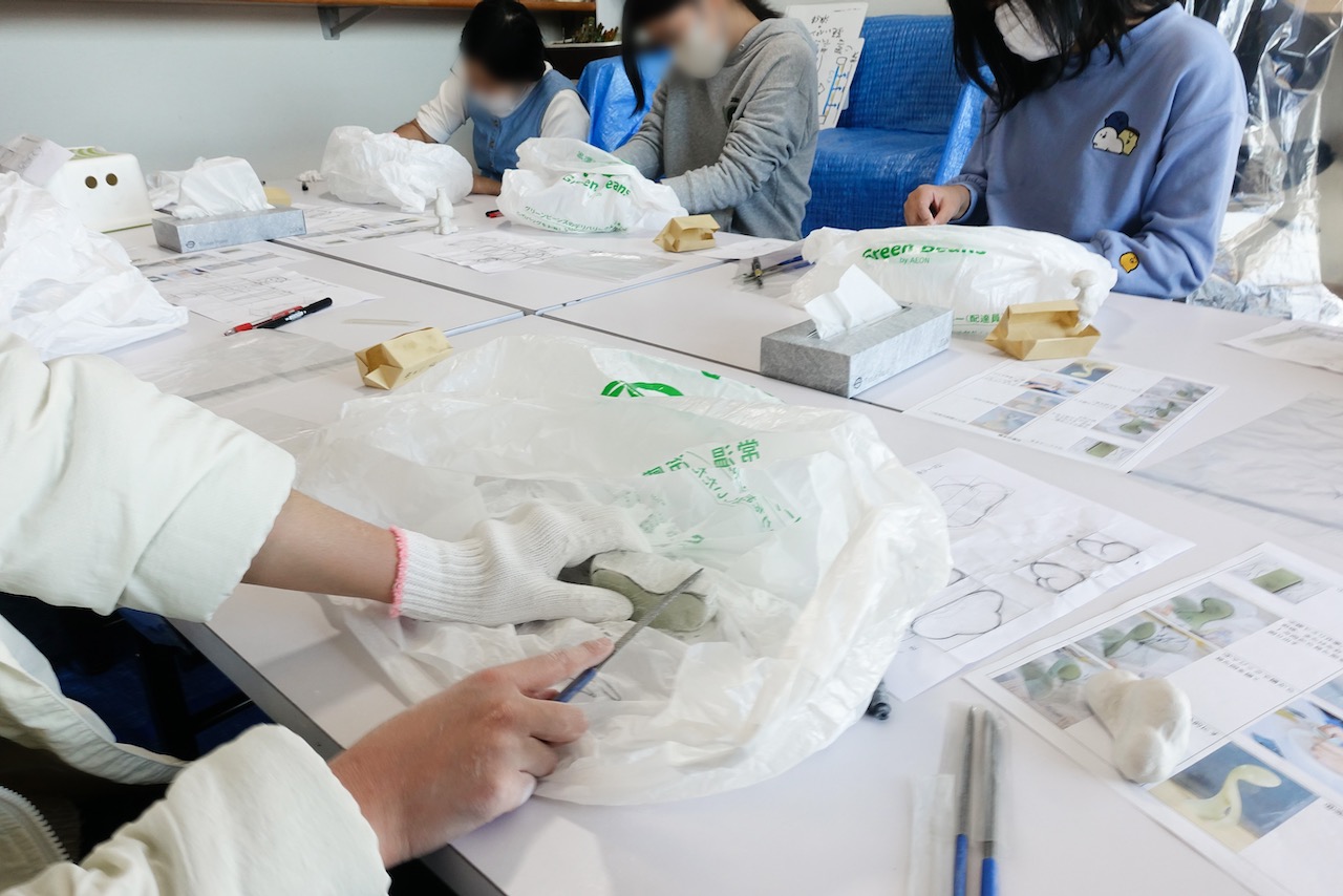 丸みのある形を作るのですが、いきなり角を落とすのではなく、まずは1方向から見た形にざくっと削り落とします。それが出来たら、90度回転させて横方向に削ります。石の中にある形をイメージしながら、発掘のように焦らず地道に彫り出していきましょう。