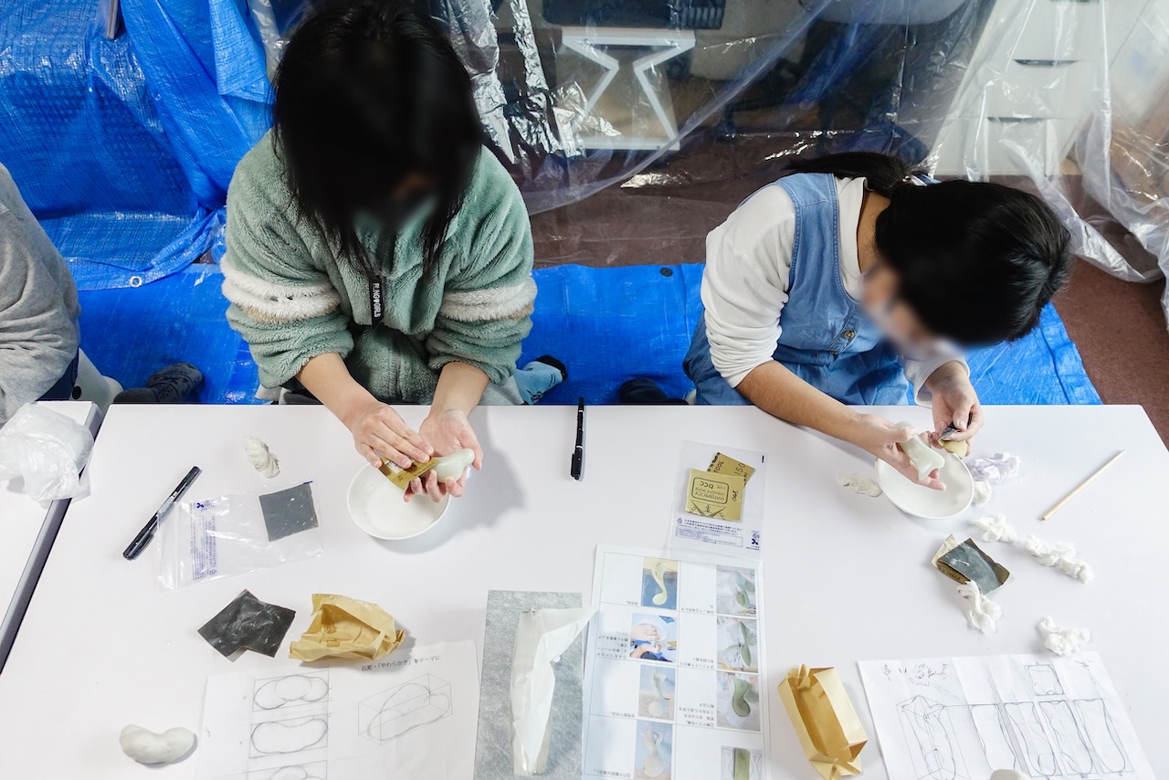 石彫は棒ヤスリでの造形が終わったら、耐水ペーパーでの磨き作業に移ります。紙ヤスリには「番手」というものがありまして、数字の少ない方が粗いです。180番→240番→400番→800番→1500番と段々目を細かくして磨き上げていきます。焦って大きな傷が残ったまま、次の番手へと進むと再び戻ってやり直しになります😭。宝石磨きのようで楽しい作業ですので、ひたすら心を無に磨きましょう。