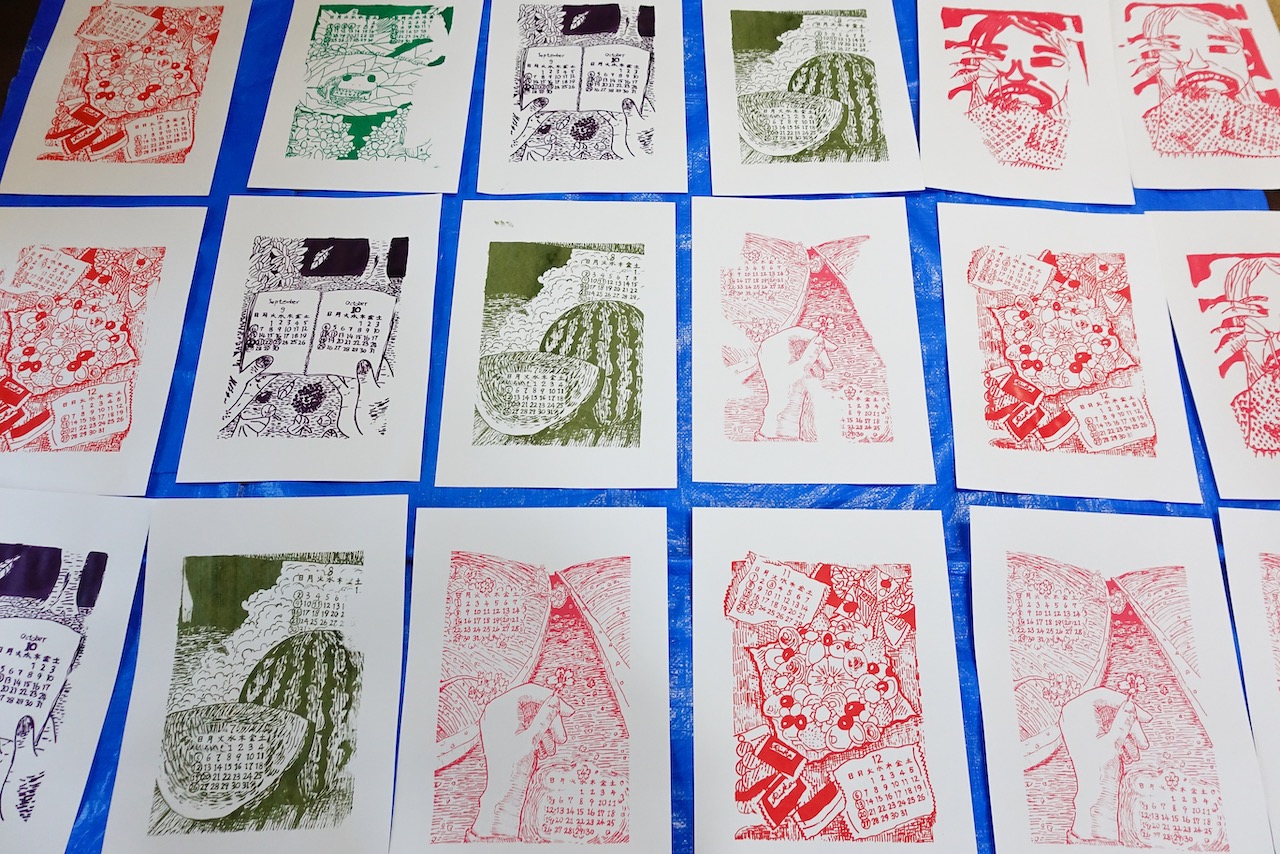 刷る力加減、インクの練り具合、インクの膜を作って紙を敷くなどの手順…等難しいこともありますが4枚刷ってだいぶ慣れましたね。みんな上手。個性もあって良いです。