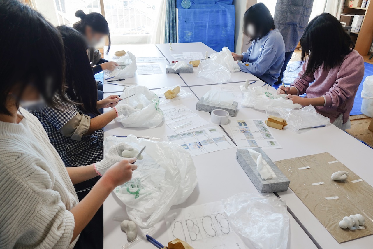 「やわらかい形」をテーマに、石の重さと元の石の四角さを感じさせない形を想像してみましょう。今週はエスキースを描いて粘土でマケットを作り形を考えました。竹橋の東京国立近代美術館のコレクションにて抽象彫刻の巨匠ジャン・アルプの作品(下)がたくさん見れますので、これを機にぜひ。
